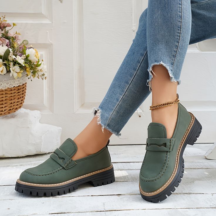 Step into effortless style this season with these chic autumn loafers. Crafted with a soft matte finish, these shoes offer a perfect blend of comfort and sophistication. The sleek penny-loafer design is elevated by a chunky, non-slip sole, providing both durability and a modern edge. A subtle contrast stitch detail adds a touch of refinement, while the cushioned insole ensures all-day wearability.